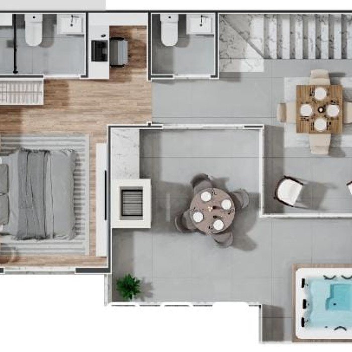 2 dormitórios 3 banheiros Piscina Garagem Churrasqueira