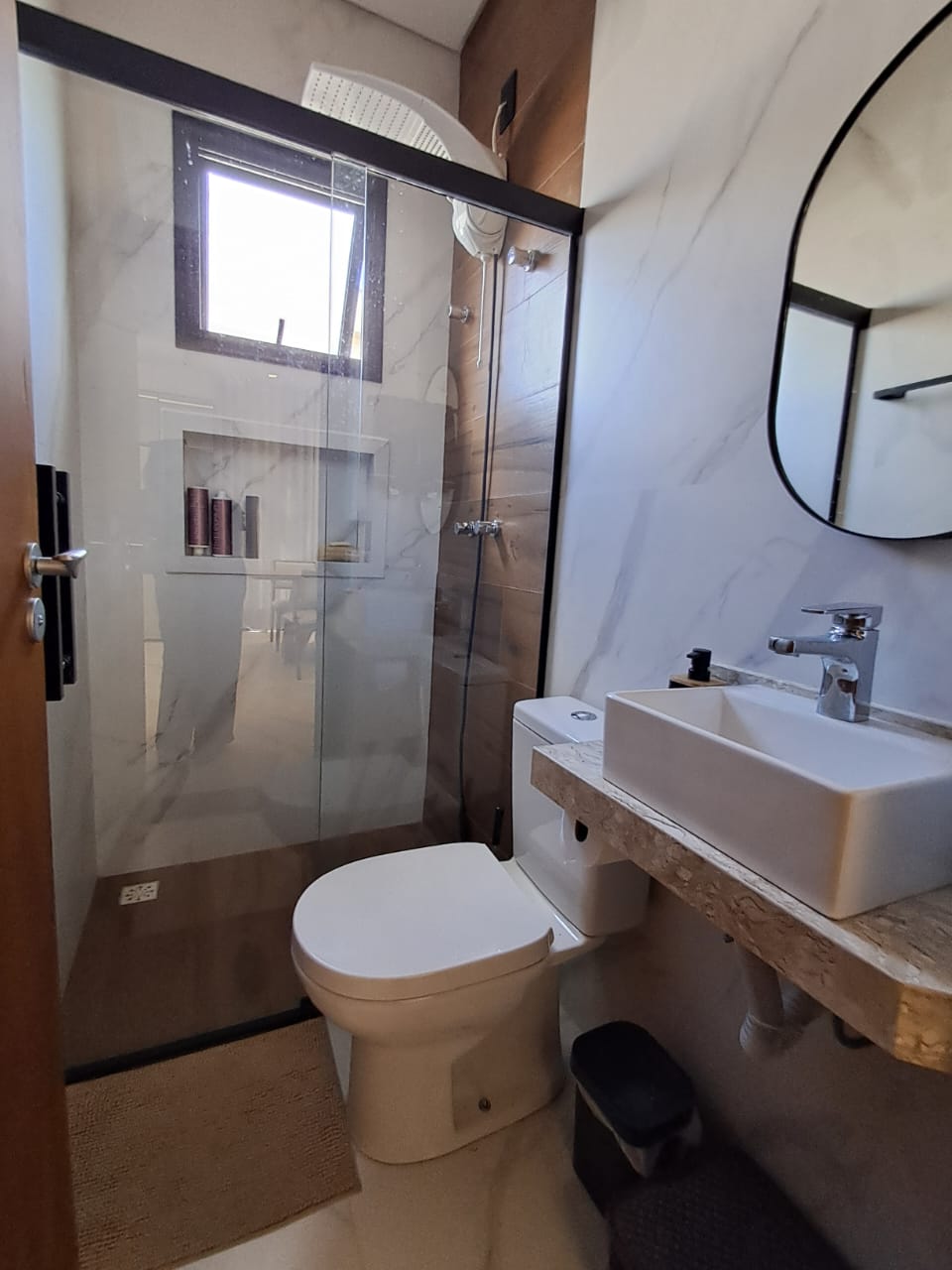 - Wc suíte com box piso-teto, com 2 chuveiros e 2 cubas;