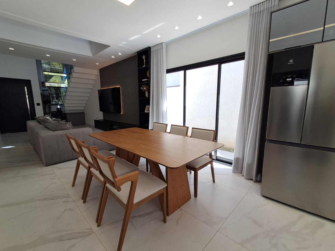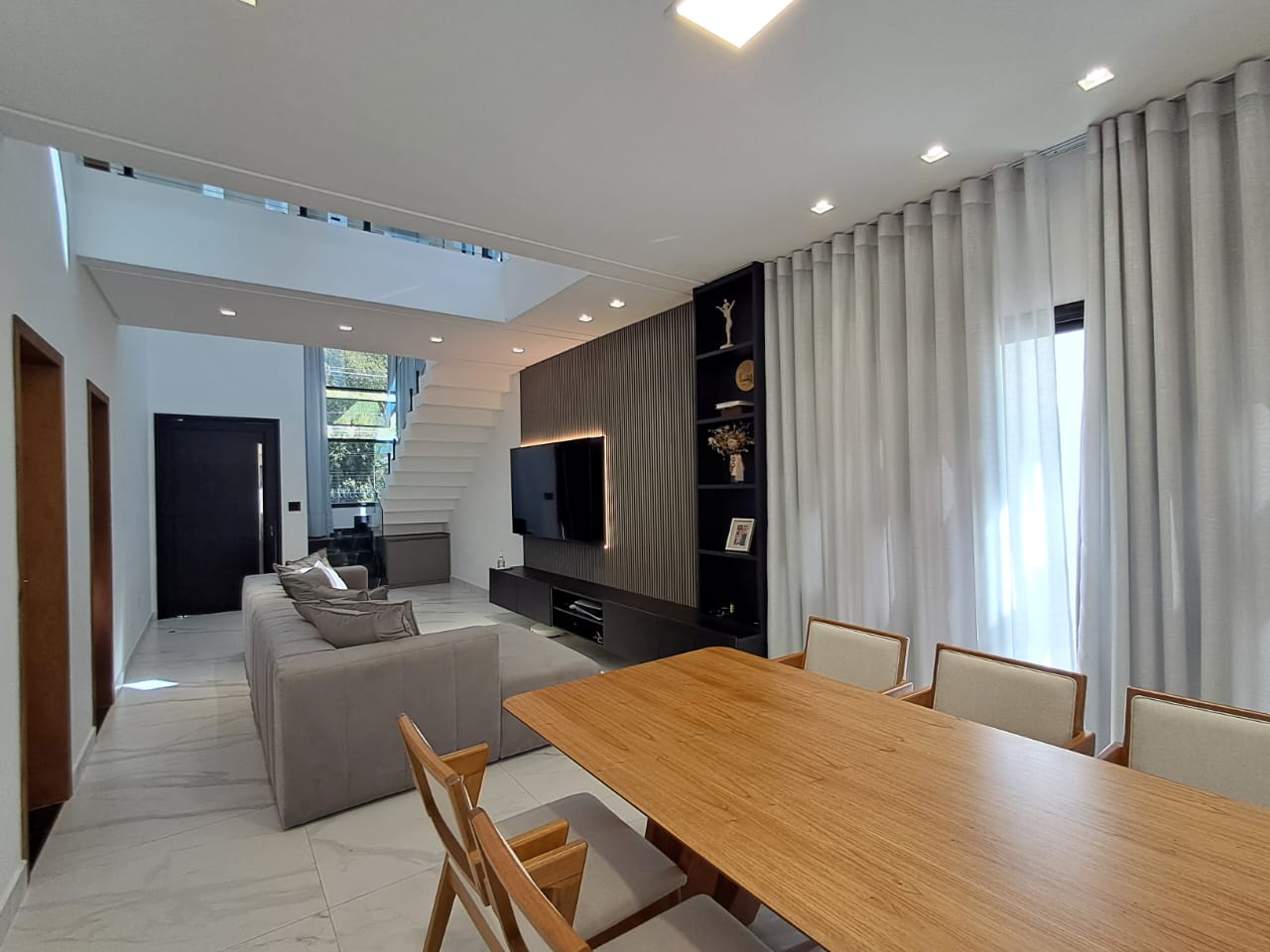 - Móveis planejados DIMARE (unidade Taubaté): Closet da suite, painel da sala, armário de “brinquedo” embaixo da escada, ilha com o cooktop e móveis, móveis debaixo da pia, cristaleira com micro e forno de embutir além do espaço da geladeira, despensa com prateleiras para alimentos e eletrodomésticos;