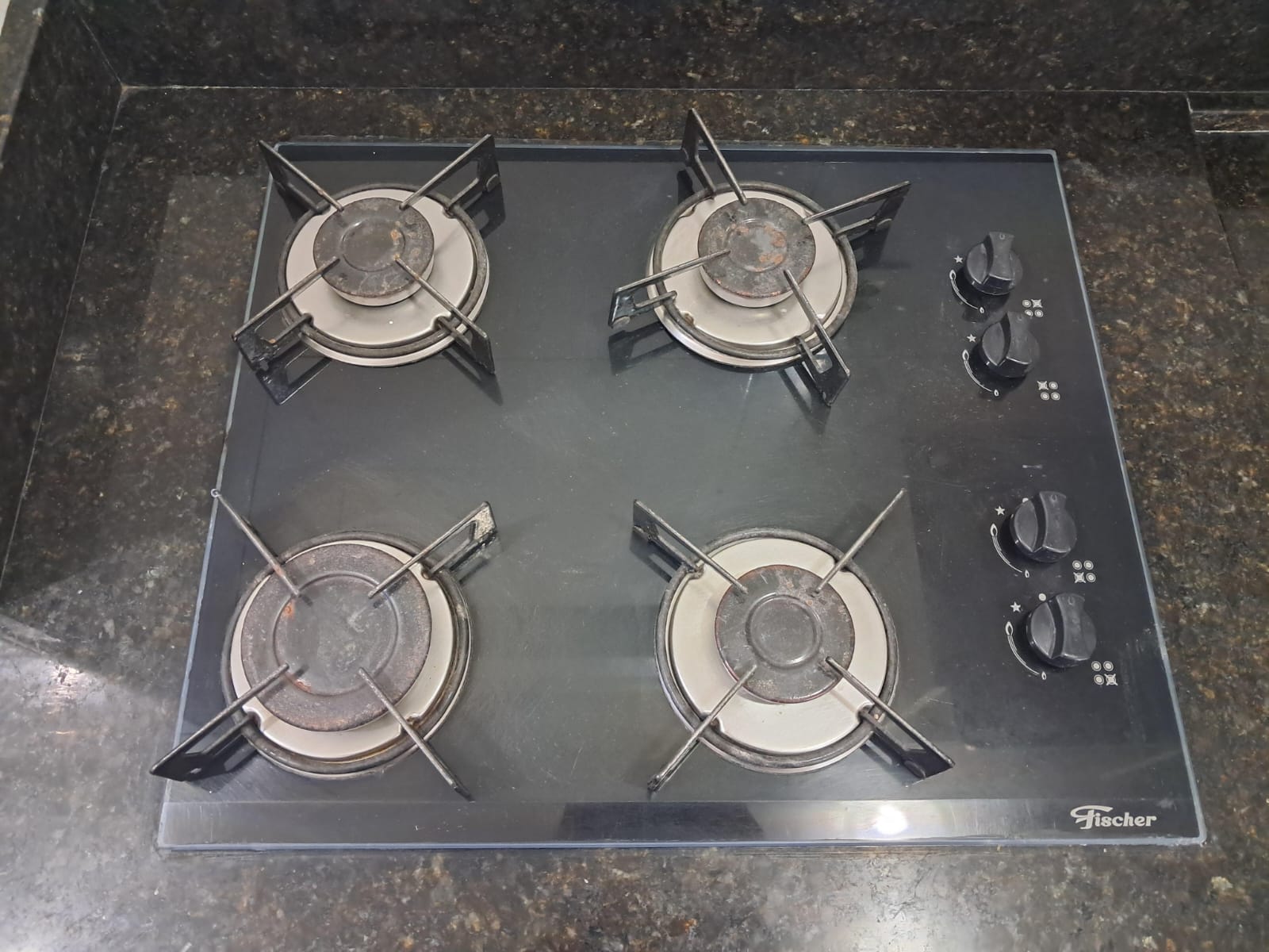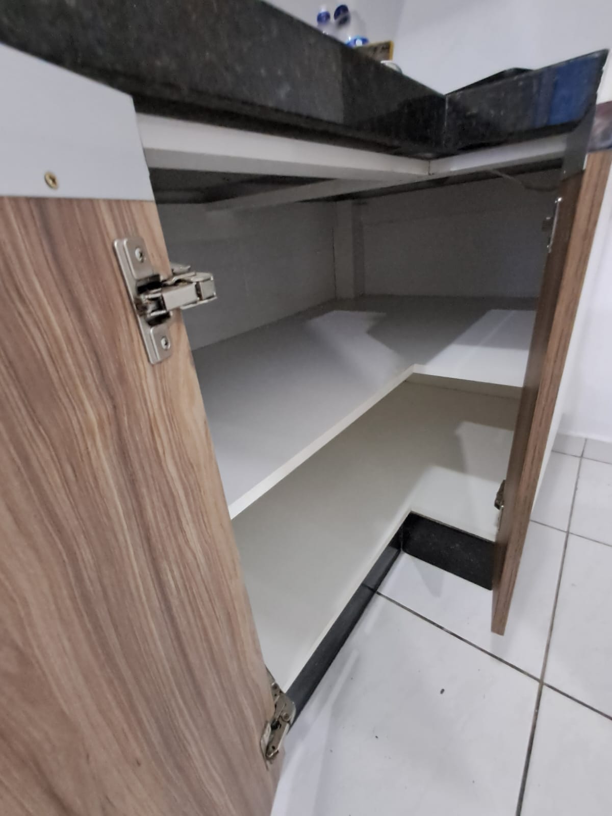 - cozinha com planejados, balcão de pedra, fogão cooktop e forno embutido;