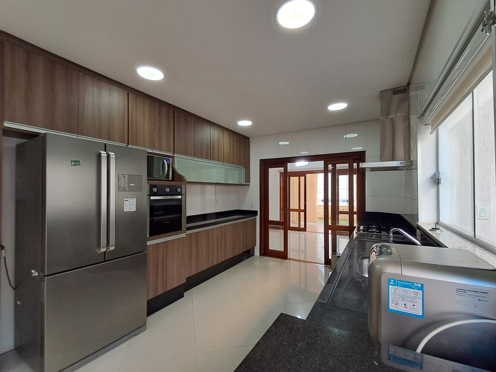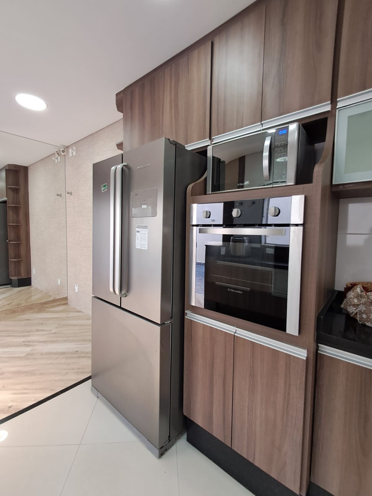 - Sala integrada com a cozinha planejada - inclusos fogão cooktop, forno embutido, coifa, micro-ondas, geladeira, purificador;